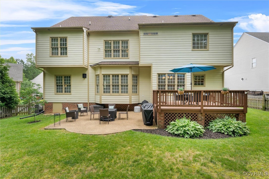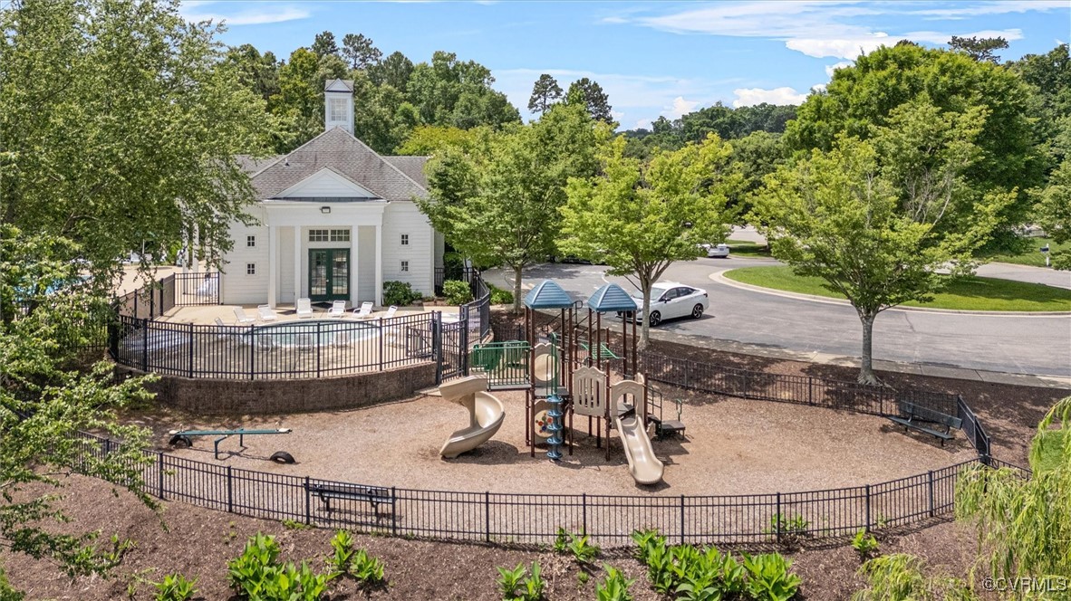 Welcome to The Grove, a thoughtfully designed neighborhood spanning 300 acres of gently rolling terrain in the heart of Midlothian. Just minutes from the YMCA, top-rated schools, and the charming Village of Midlothian, this vibrant community offers the perfect blend of location and lifestyle.Enjoy resort-style amenities right outside your door, including scenic walking trails, multiple playgrounds, a welcoming clubhouse, a catch-and-release pond, and a community pool exclusively for residents. Tucked away on a peaceful cul-de-sac in the desirable Kingham section of The Grove, this stunning 6-bedroom, 4.5-bath transitional home, built by Boone Homes in 2004, is ideal for families seeking space, function, and elegance. The classic brick and Hardiplank exterior is complemented by a fenced rear yard, irrigation system, paved driveway, and a two-car side-load garage. Enjoy outdoor entertaining on the rear deck and aggregate patio.Inside, refined details like hardwood floors, custom moldings, and a dramatic two-story foyer create a warm welcome. The main level features formal living spaces, a bright eat-in kitchen that flows seamlessly into the family room with a dual sided fireplace shared with the home office .Upstairs, retreat to a spacious primary suite complete with a sitting area, large walk-in closets, and a luxurious en-suite bath. The second floor also offers a convenient laundry room, a recreation room, and three additional bedrooms with two full baths. On the third floor, you'll find even more flexible living space with two bedrooms, a full bath, and walk-in storage. This exceptional home offers space, style, and community -- the perfect combination for modern family living.Come home to The Grove. Life is better here.